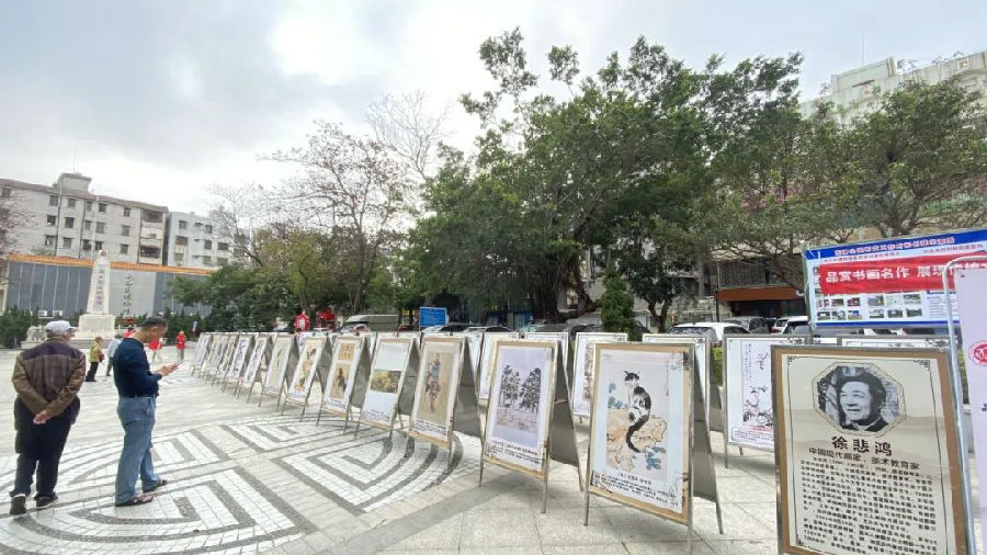 中国书画艺术有着几千年的辉煌历史,是中华文明的瑰宝。在漫长的历史长河里孕育出许多著名的书画家及经典作品。他们的作品既鲜明生动体现深厚功力和无穷魅力,又深刻真实地反映每个时代的精神面貌和人文气质,两者相互交织,相互映辉,很好地呈现了中国书画艺术的独特韵味和文化内涵。此次展览的历代著名书画家有米芾、八大山人、吴昌硕、齐白石、徐悲鸿、张大千等,这些大师们的作品是如此精湛美妙,风格纷呈,或宏强大气,或真实生动,或秀气润泽,无不展现了中国书画艺术的无穷变化和迷人风采。他们的作品是诗书画印的高度融合,可谓诗中有画,画中有诗,具有浓浓的中国民族文化元素与诗哲情怀。每位名家各展出代表作品14幅(精美复作品),并配有艺术评价,做到图文并茂、通俗易懂、形式新颖,可鉴可赏。现场观众通过欣赏名家艺术作品,陶情操、怡性情、增涵养,从中提升自身的文化素养和鉴赏能力,开阔艺术眼光。此次高品位上档次的书画作品展较好满足了广大群众的审美眼福,也为城区节日增添一道文脉郁香的风景线。