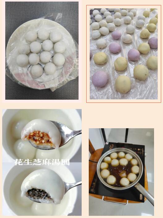 做汤圆成为活动的首场秀,体验其中乐趣和新鲜感。图书馆员工陈梦韵亲手示范,手把手教大家一起做汤圆。首先把糯米粉放入准备好的大盆桌面上,导入清水,用筷子搅拌均匀成絮状,再揉捏糯米粉变成光滑的面团,并搓成条形,然后用刀切成一小段,慢慢捏出一个碗状,加入准备好的芝麻馅和花生馅,继续揉捏,直到收口为止,便完成所有工序,最后待水开后,放入做好的汤圆,待汤圆煮到膨胀变大,并泛在水面就可以吃了。在这个过程中,大家一边开心做汤圆,一边聊着元宵节的各种习俗,现场热火朝天,热闹非凡,洋溢着浓浓的节日气氛。当汤圆煮熟后,大家吃上美滋滋、香喷喷的汤圆时,无不乐开怀,脸上露出欢快的笑容与幸福感!