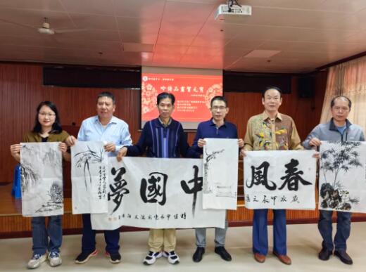 (吴少华馆长和全体书画创作人员合影)